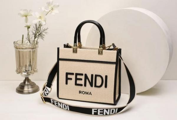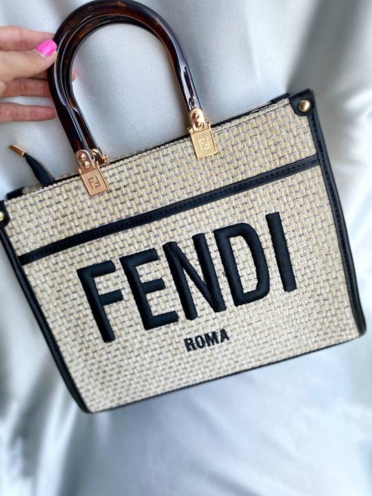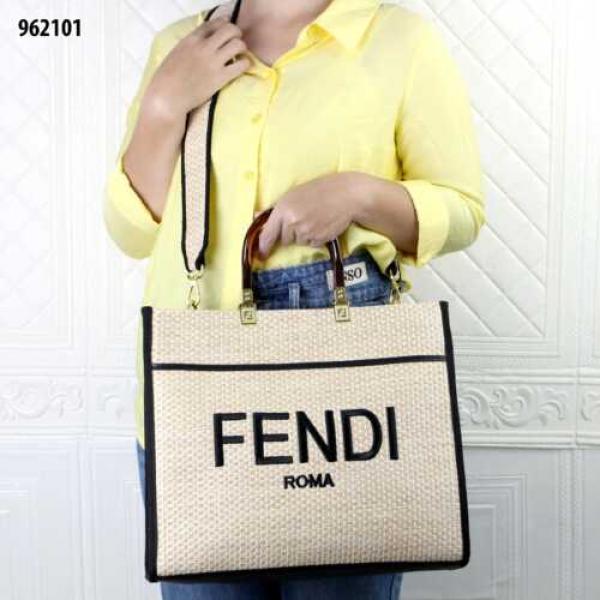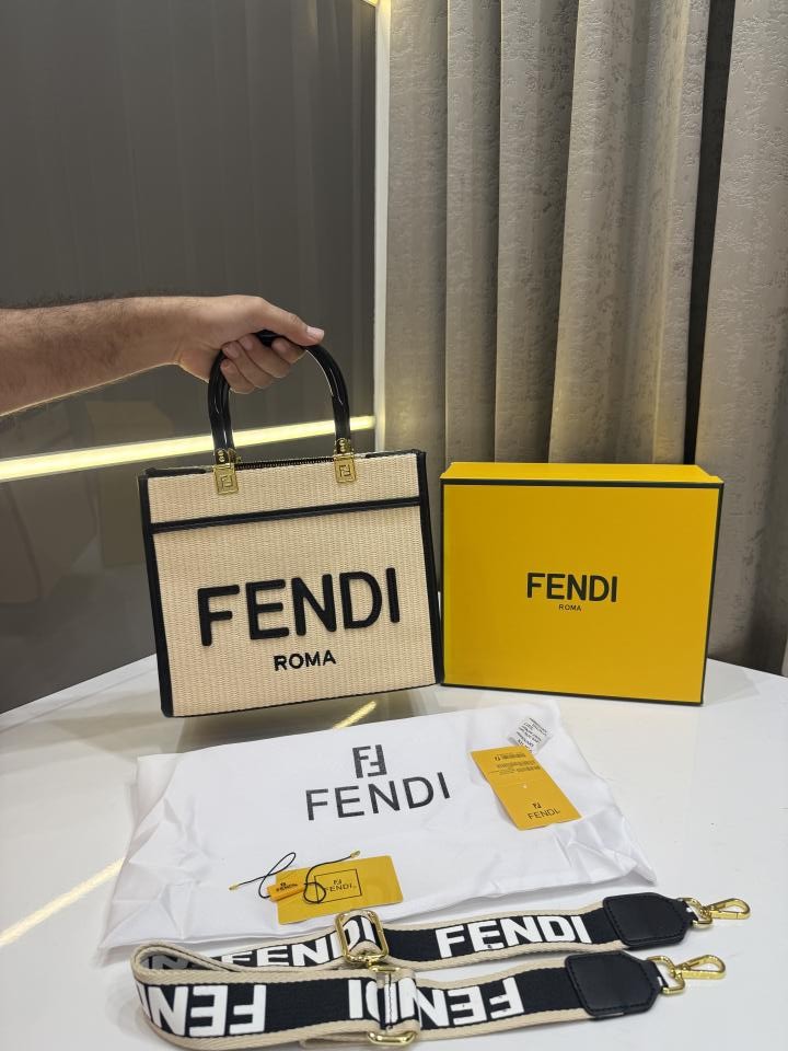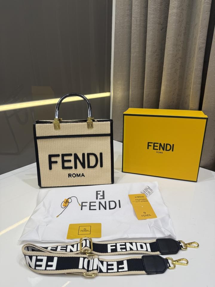 FEND.I ROMA SUNSHINE RAFFIA-EFFECT PREMIUM TOTE WITH OG BOX & PACKING