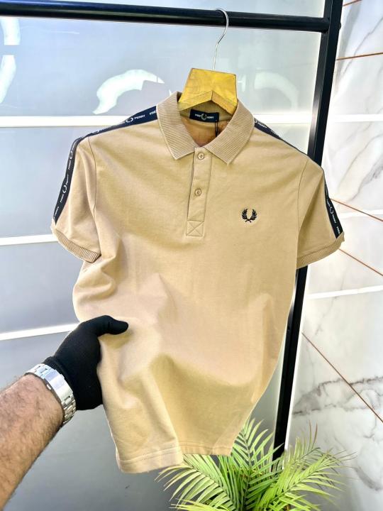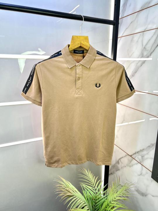 Home T-Shirts Fred Perry Beige Polo Premium Collar Neck T-shirt F2978-BE