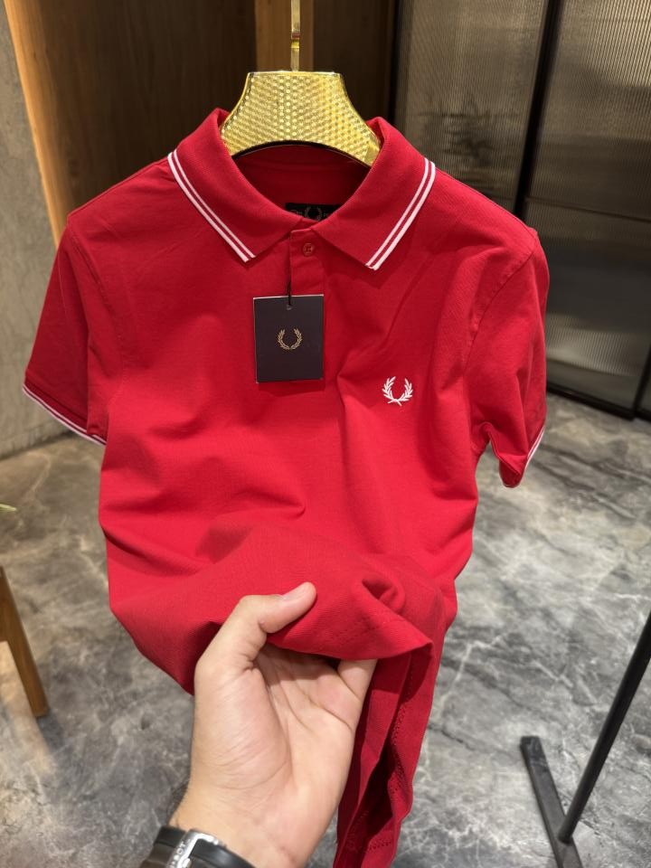 FRED PERRY RED KNITTED PREMIUM POLO TSHIRT STORE ARTICLE