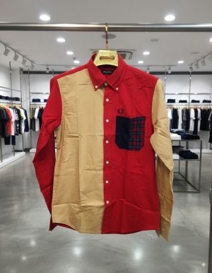 Fred_Perry_Beige_Red_Embroidery_Logo_Pocket_Look_Premium_Oxford_Shirt_(1836)