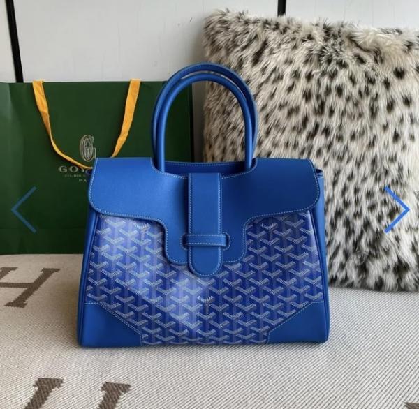 GOYARD SAIGON BLUE TOTE BAG PREMIUM LEATHER WITH DUST BAG & CARD
