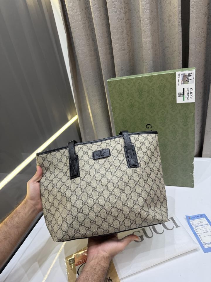 GUCC.I BLACK CANVAS MONOGRAM TOTE PREMIUM BAG WITH OG BOX & DUST BAG