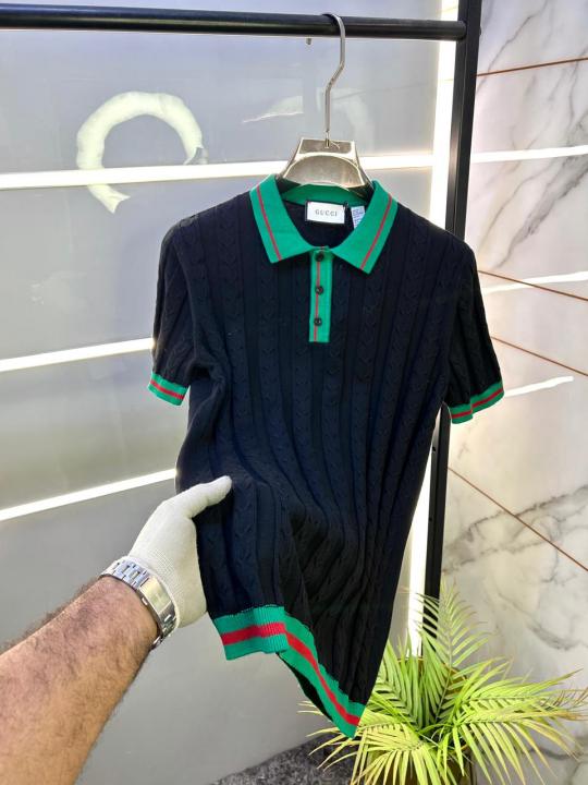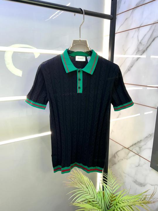 Gucc i Black Imported knitted Premium Collar Neck Polo T-shirt F3487-BL