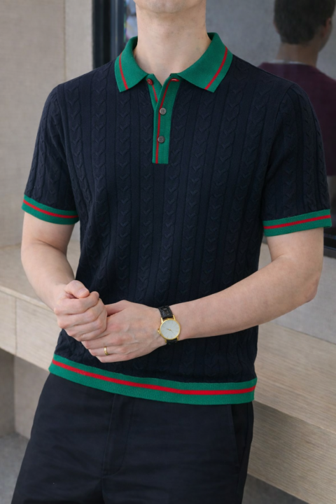 Gucc i Navy Imported knitted Premium Collar Neck Polo T-shirt F3487-NY
