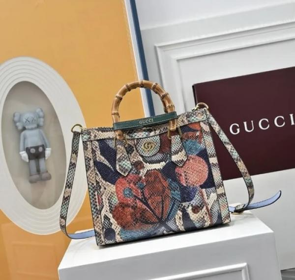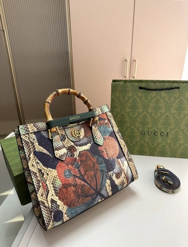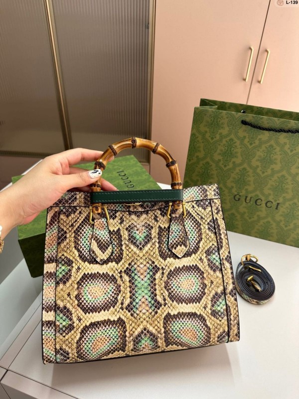 GUCC.I GG DIANA PYTHON PREMIUM TOTE BAG WITH OG MAGNETIC BOX & DUST BAG (PYTHON)