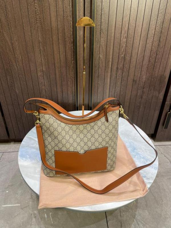 Gucc_I GG Supreme Monogram Linea A Hobo Brown With dust cover 490