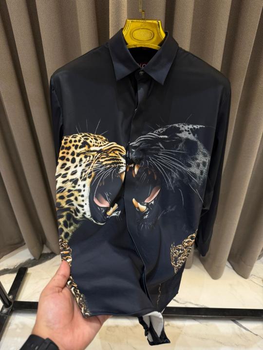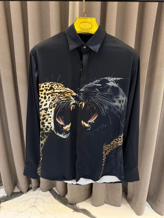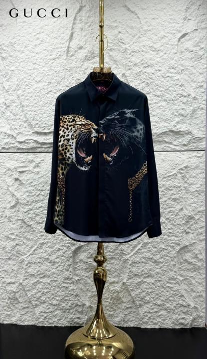 Gucc_i Leopard Print Box Pack Full Sleeves Shirt Black
