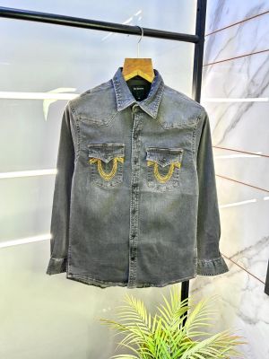 True Religion Logo Grey Super Premium Denim Shirt F3027-GY