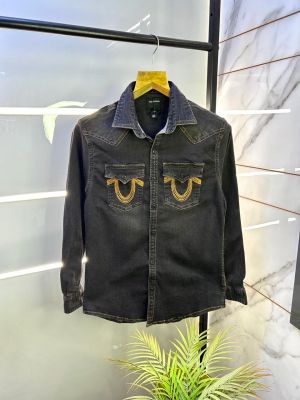 True Religion Logo Black Super Premium Denim Shirt F3027-BL