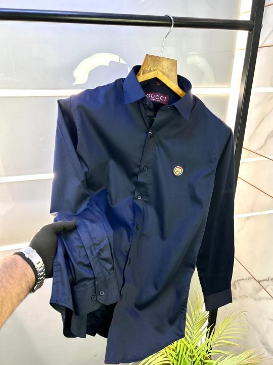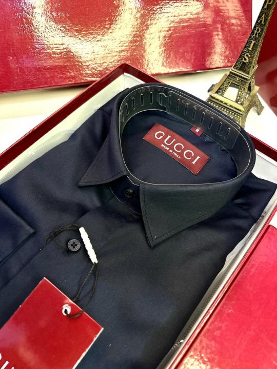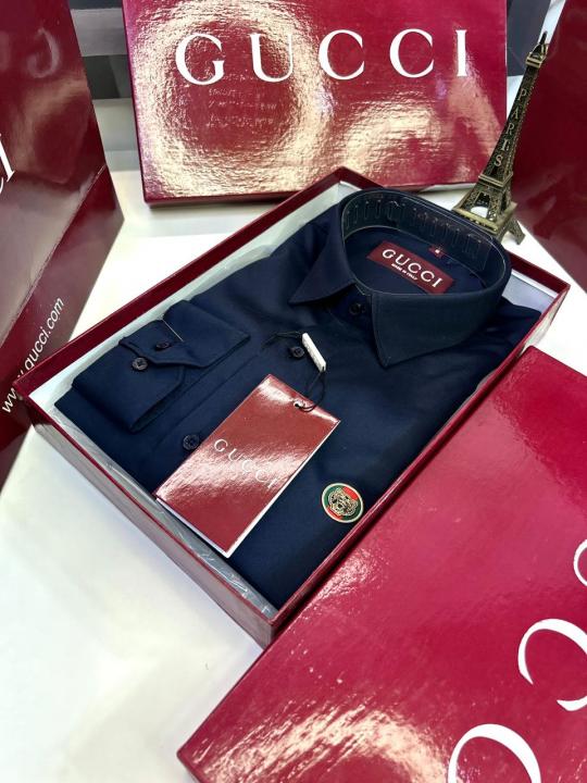 Home Shirts Gucc i Logo Navy Premium Shirt With Brand Box Packing and Carry Bag F2980-NY