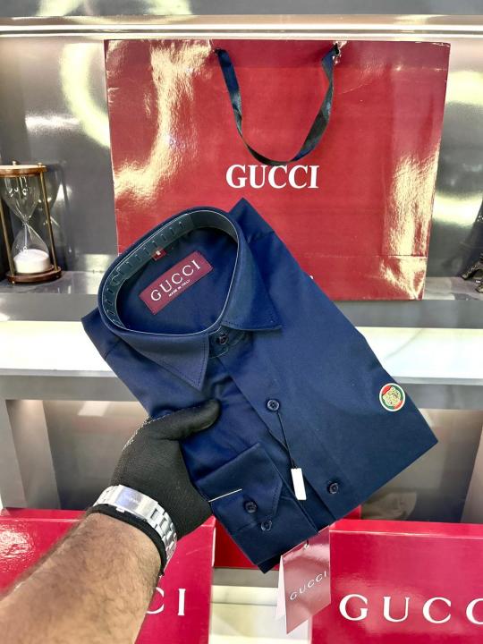 Gucc i Logo Navy Premium Shirt With Brand Box Packing and Carry Bag F2980-NY