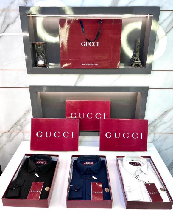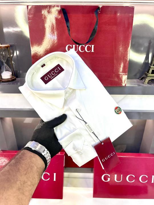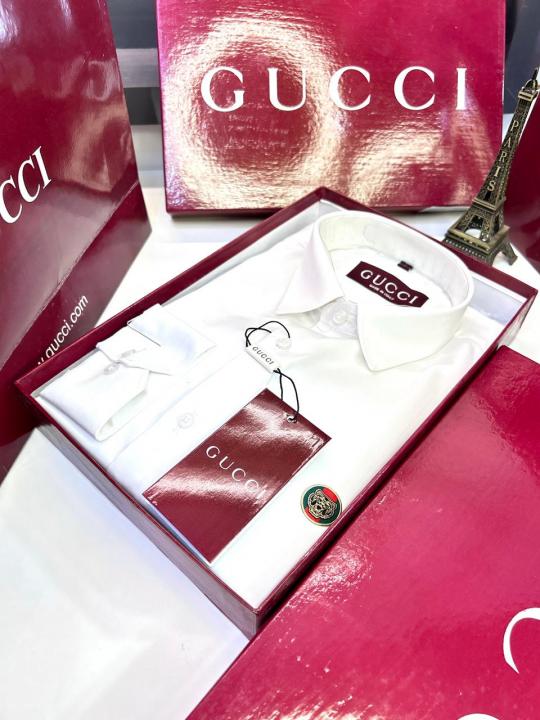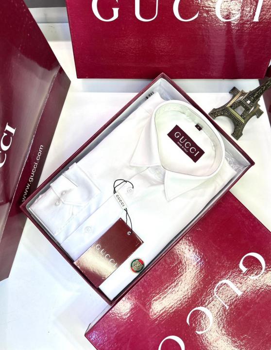 Home Shirts Gucc i Logo White Premium Shirt With Brand Box Packing and Carry Bag F2980-WH