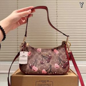 Coach_ Teri Shoulder Bag in Signature Canvas with a cherry print Bag With Double Box premium quality