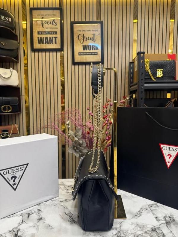 Guess Nastra Convertible Flap Crossbody Bag With Box Dust Bag Including Carry Bag (Black)