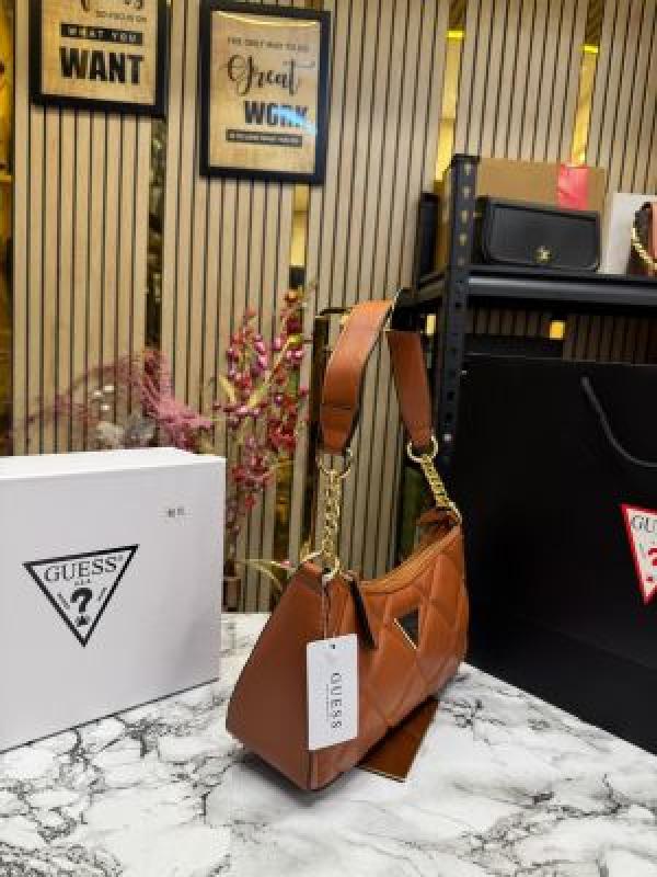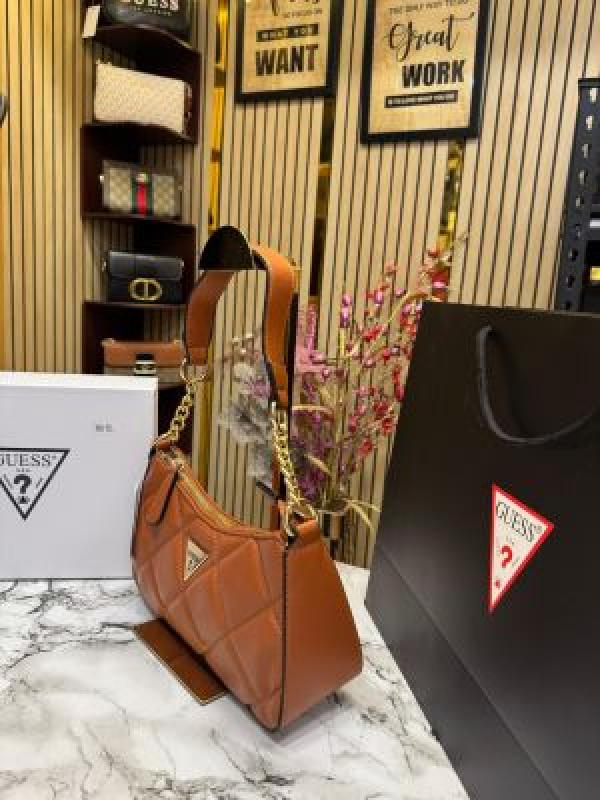 Guess Quilted Shoulder Bag With Box And Dust Bag Including Carry Bag (Brown)