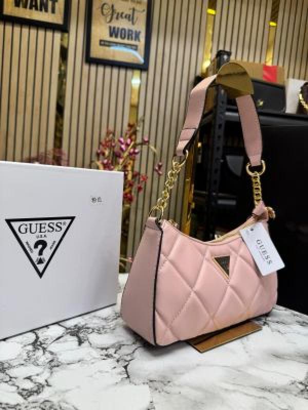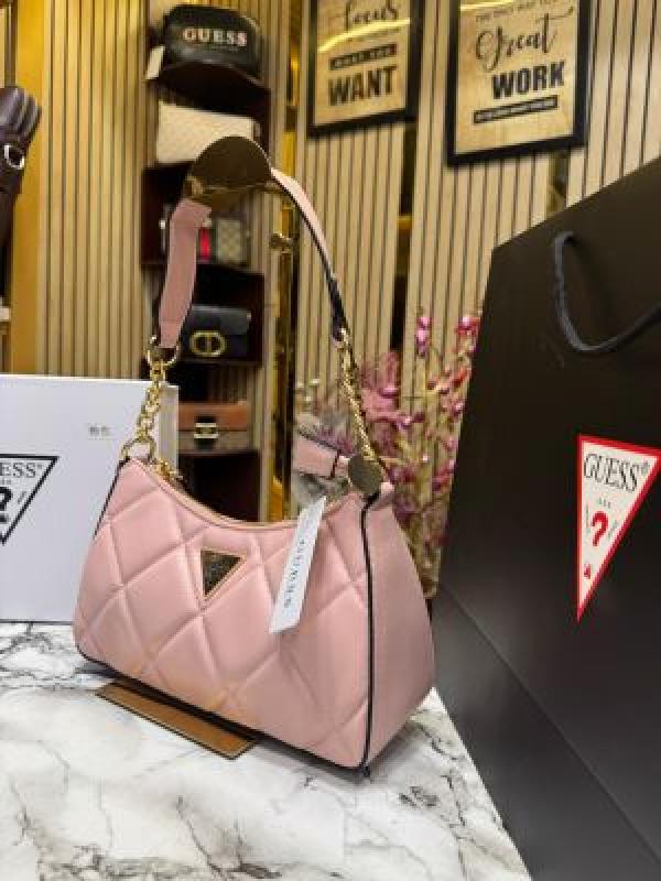 Guess Quilted Shoulder Bag With Box And Dust Bag Including Carry Bag (Pink)