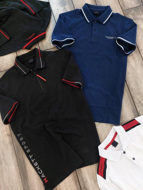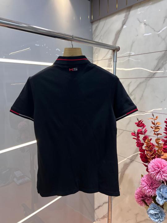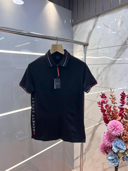 Home T-Shirts Hacke t Black Premium 240 gsm interlock compact cotton fabric Polo Tshirt with Collar and Sleeves Design Zip Style 3212