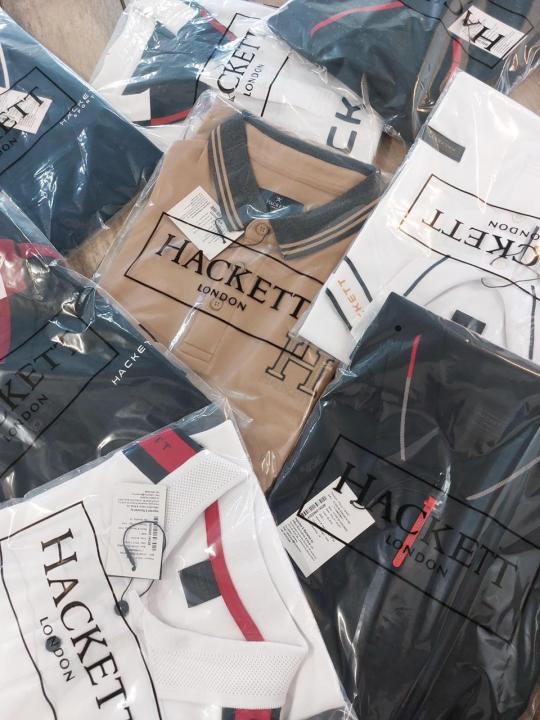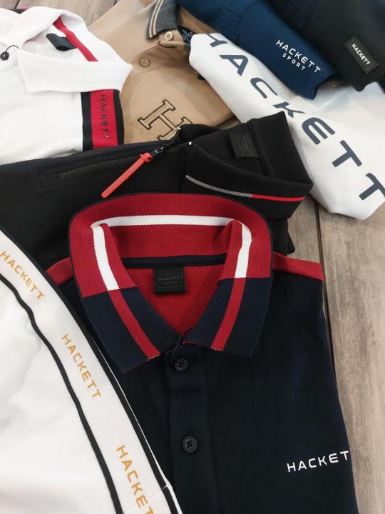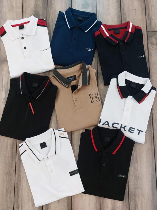 Home T-Shirts Hacke t White Premium 240 gsm interlock compact cotton fabric Polo Tshirt with Shoulder Strip and Patch Logo 2991