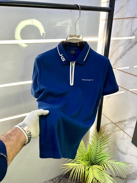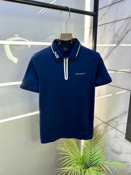 Hacket t London Blue Zipper Collar Neck Premium Polo T-shirt F3429-BU