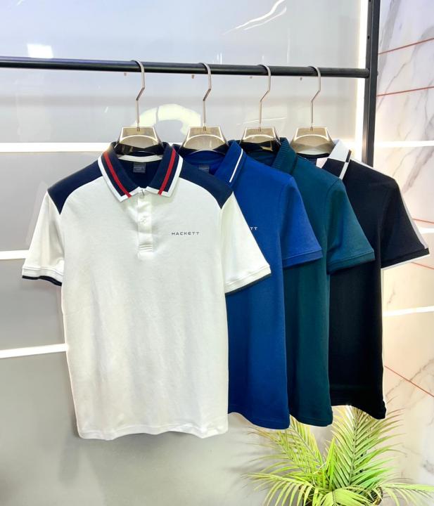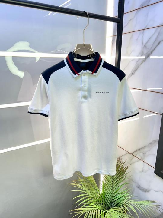 Home T-Shirts Hacket t London White Collar Neck Premium Polo T-shirt F3429-WH