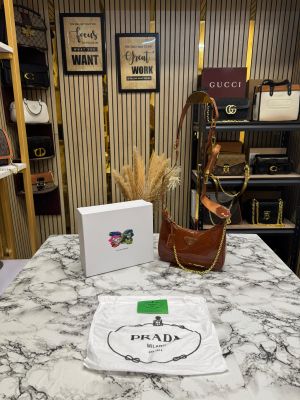 PRAD_A RE EDITION GLOSSY WITH OG BOX DUST BAG CARD & TAG BROWN
