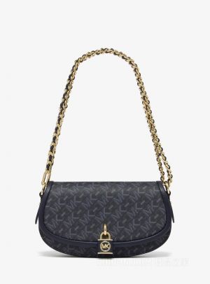 Michael_Kors Mila Empire Signature Logo Shoulder Bag With Damage Box And Dust Bag (Black)