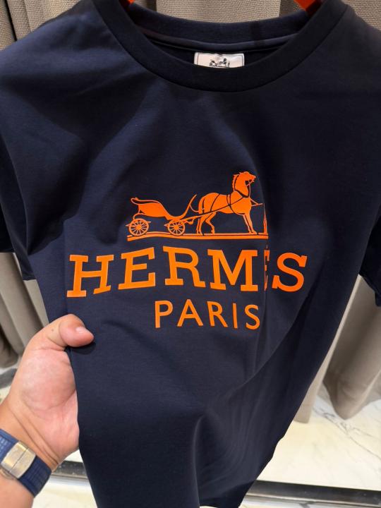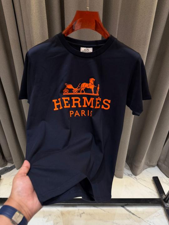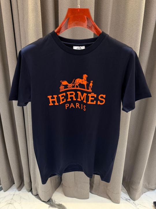 Hermes Middle Brand Print Round Neck T-shirt Black