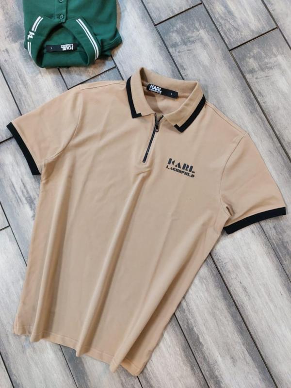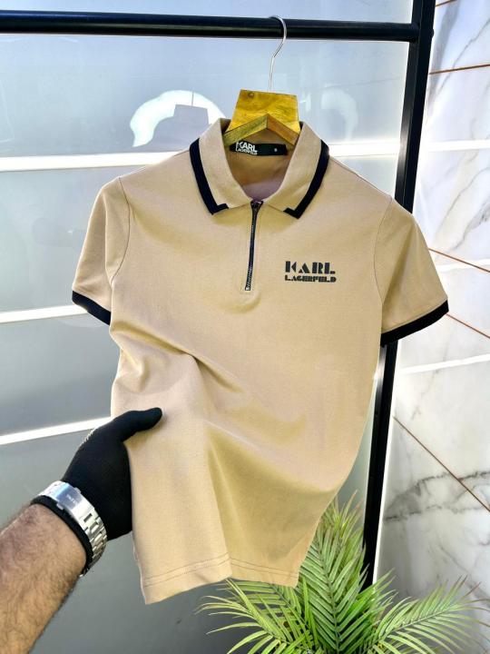 Home T-Shirts Karl Lagerfeld Beige Polo Premium Collar Neck T-shirt F3043-BE