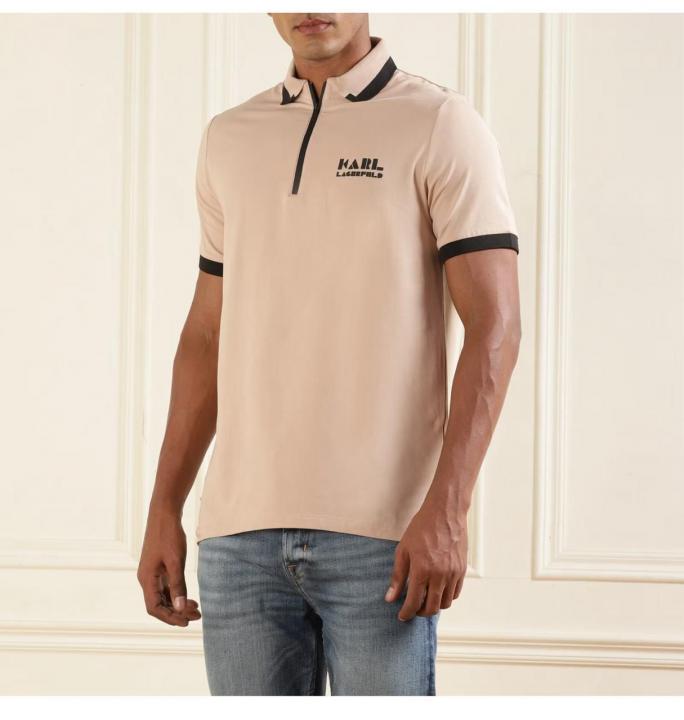 Karl Lagerfeld Beige Polo Premium Collar Neck T-shirt F3043-BE