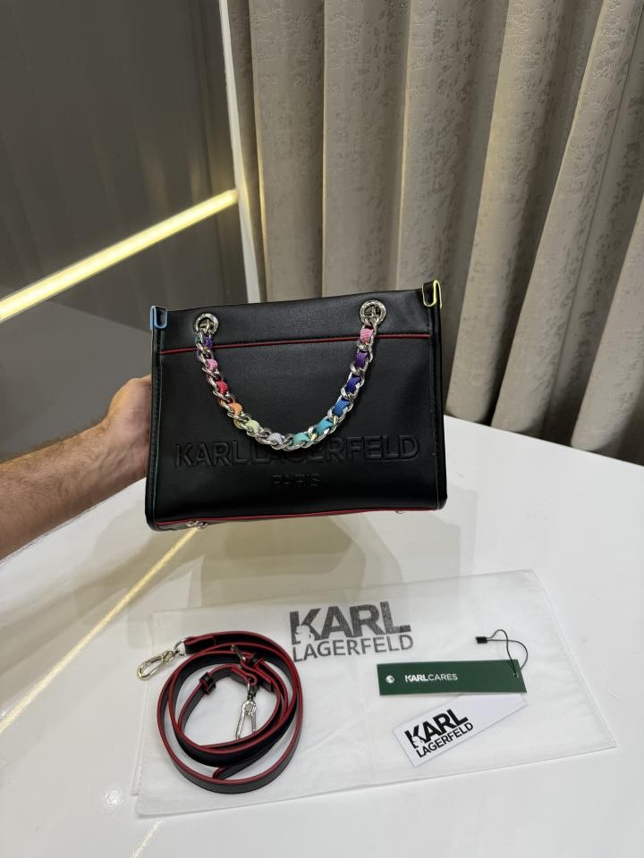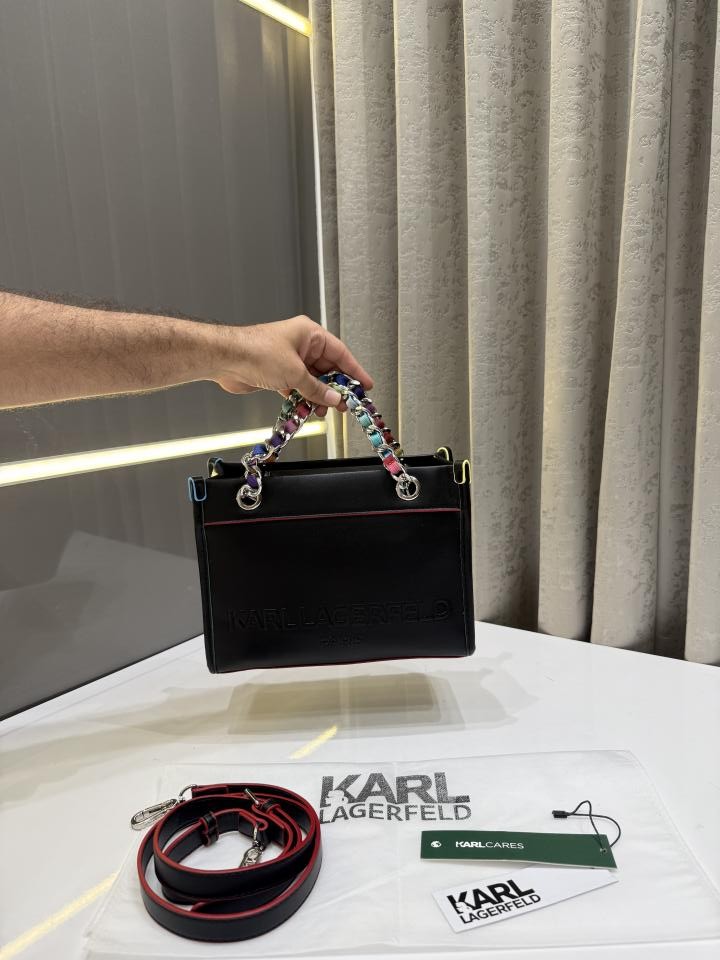 KARL LAGERFIELD SAVOIE BLACK LEATHER BAG PREMIUM WITH OG DUST BAG