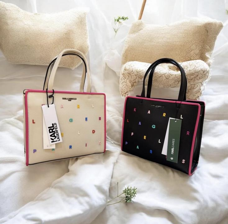 KARL WHITW MAYBELLE SATCHEL KARL LETTERS BLACK BAG PREMIUM WITH OG DUST BAG