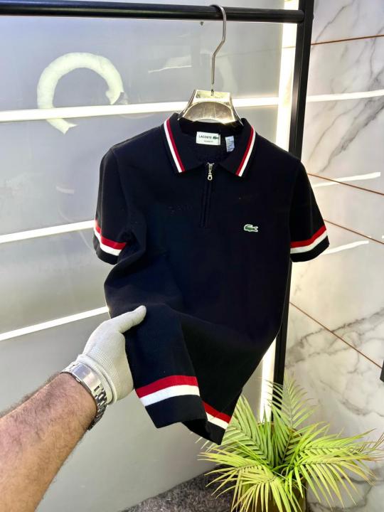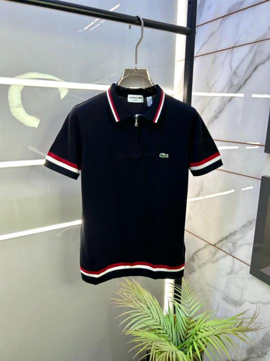 Lacost e Black Imported knitted Premium Collar Neck Polo T-shirt F3485-BL