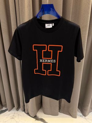 Hermes Middle Brand Print Round Neck T-shirt Black