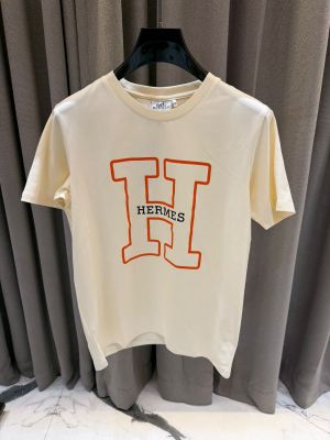 Hermes Middle Brand Print Round Neck T-shirt Cream
