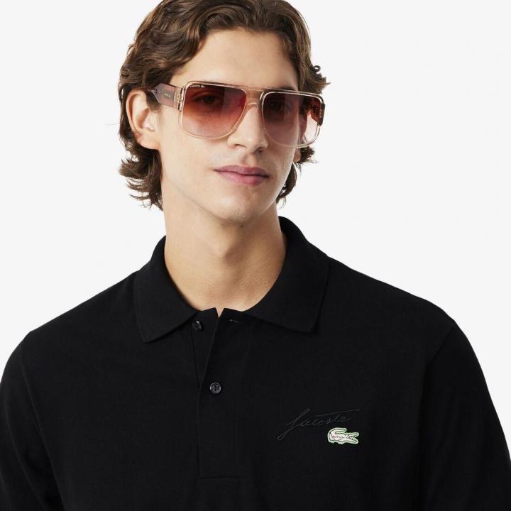 Home T-Shirts Lacost e Black Polo Premium Collar Neck T-shirt F3424-B2