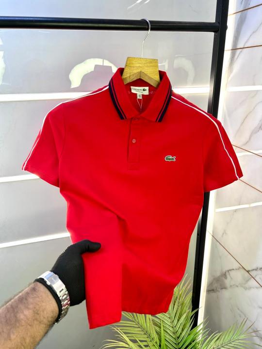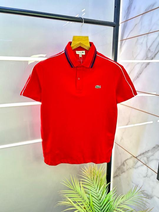 Home T-Shirts Lacost e Red Polo Premium Collar Neck T-shirt F2997-RE