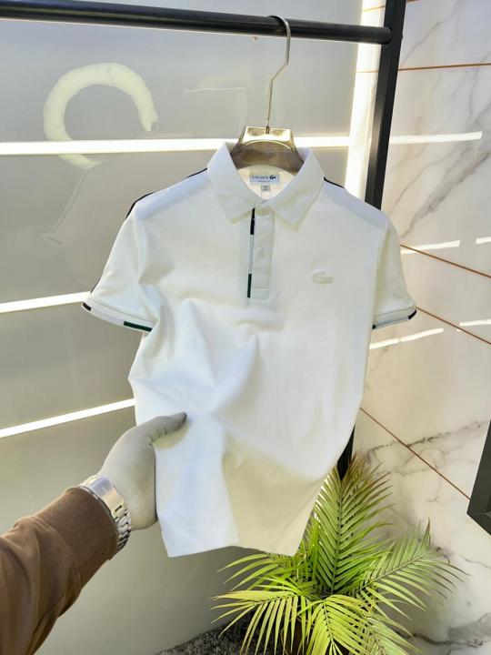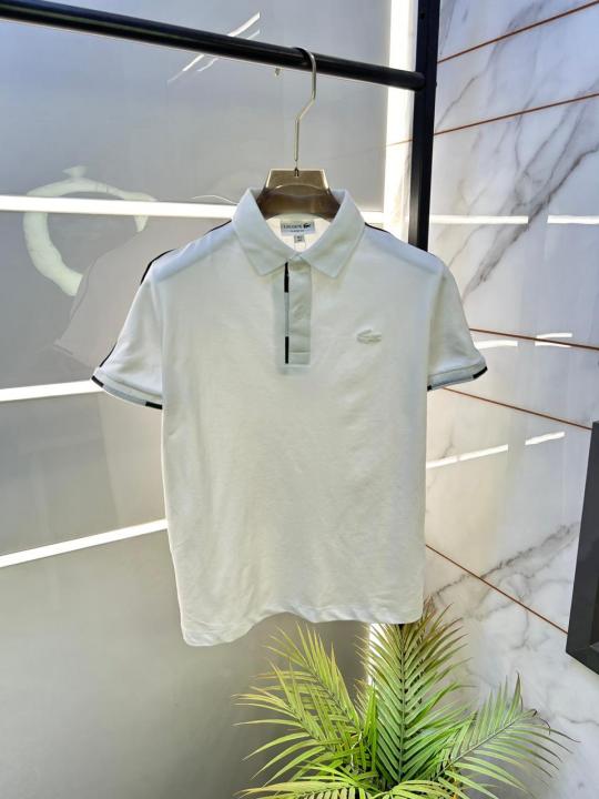 Home T-Shirts Lacost e White Polo Premium Collar Neck T-shirt F3424-W2