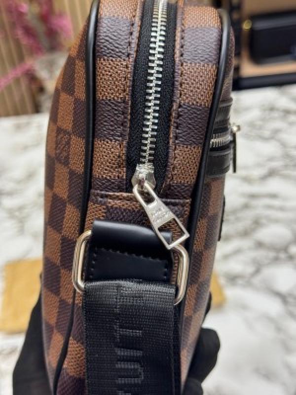 LOUIS_VUITTON LV LOGO SIDE BAG BROWN CHECKS WITH DUST BAG
