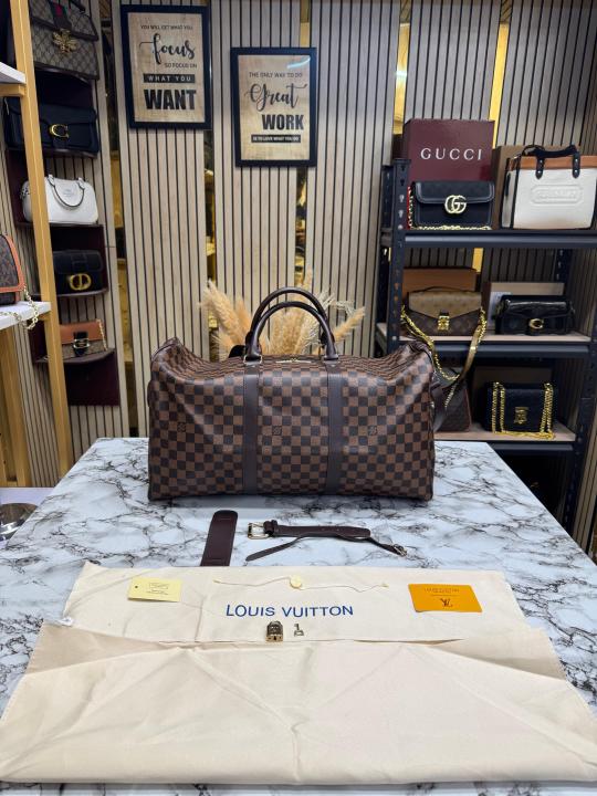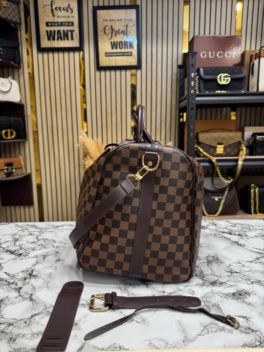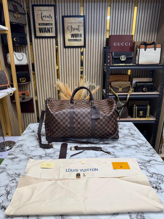 Louis_Vuitton Keep All Bandouliere Checks Duffle Bag With Dust Bag (Brown)