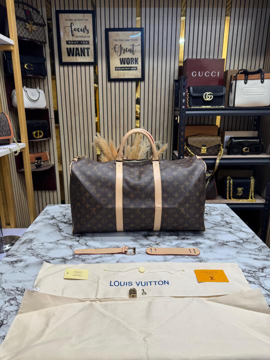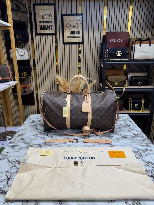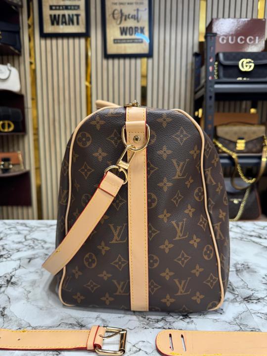 Louis_Vuitton Keep All Bandouliere Monogram Duffle Bag With Dust Bag (Brown)