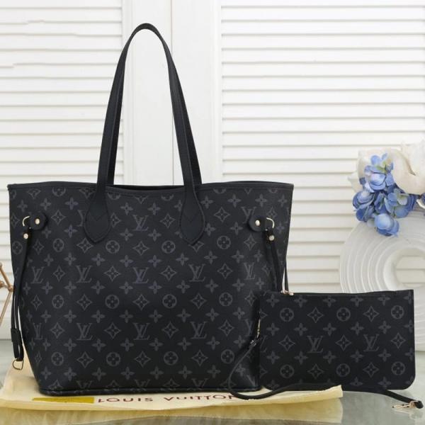 Louis_Vuitton_Neverfull_MM_Tote_Bag_With_Pouch_Monogram_Eclipse_Pattern_Brown_Grid_With_Dust_Cover_N40156