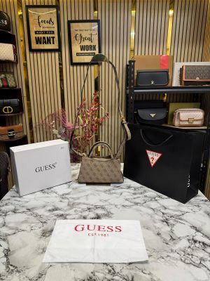 Guess Emera Logo Printed Satchel Hand Bag (Brown)