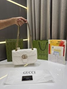 GUCC.I WHITE MARMONT PREMIUM WITH OG MAGNET BOX DUST BAG & CARRY BAG