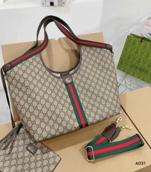 Gucci_ Giglio large tote bag featuring beige and dark brown GG canvas Bag with dust cover premium quality