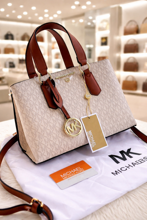 Michael_Kors Emma Medium Satchel BAG With Box & Dust Bag & Sling Belt