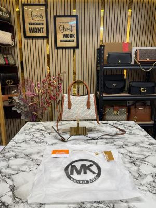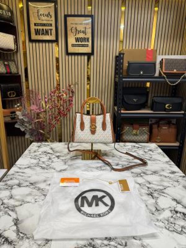 Michael_Kors Gabby Signature Satchel Bag With Dust Bag (Beige)