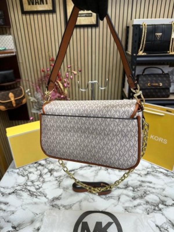 MICHAEL_KORS MK PARKER LEATHER SHOULDER BAG WITH OG BOX AND DUST BAG WITH SHOULDER STRAP WITH CARRY BAG (BIEGE BROWN)