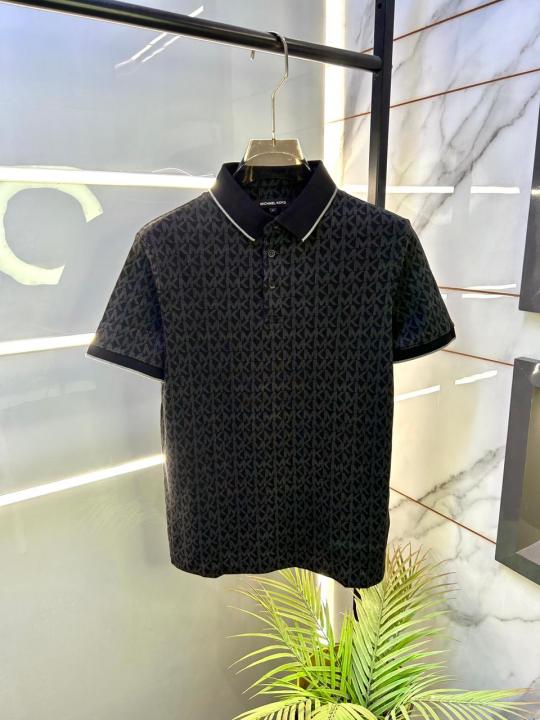 Michael_Kors Monogram Print Black Polo Premium Collar neck T-shirt F3236-BL