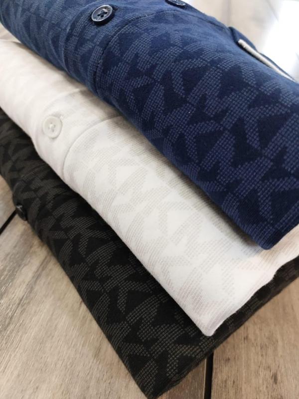 Home T-Shirts Michael_Kors Monogram Print Black Polo Premium Collar neck T-shirt F3236-BL