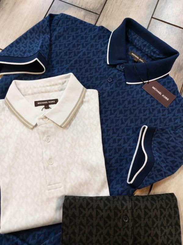 Michael_Kors Monogram Print Blue Polo Premium Collar neck T-shirt F3236-BU